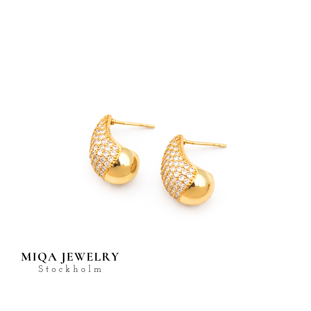 Design Ge din stil en uppgradering med dessa trendiga örhängen! Dubbelpläterade i Silver för extra hållbarhet och glans, dessa halvbåge-örhängen är prydda med gnistrande, klara cubic zirconia stenar klass AAA+.som verkligen fångar ögat. Den släta guldfinishen på insidan skapar en cool kontrast till. De är lätta att matcha med allt från jeans och t-shirt till din favoritklänning. Låt dessa örhängen bli din nya go-to accessoar för att lysa upp varje outfit!